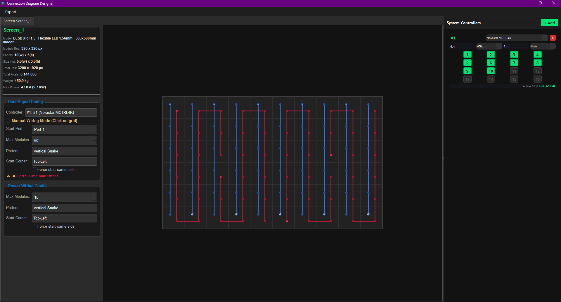 Plan your screen layout on a video processor or media server output (e.g., Disguise, Resolume, Novastar).